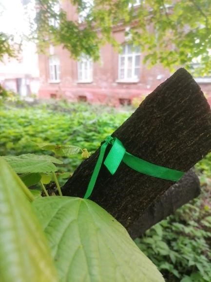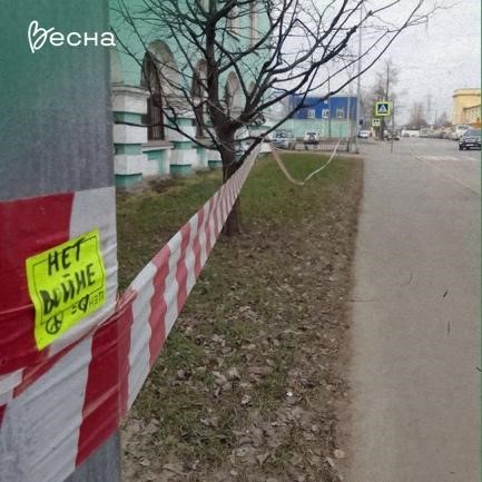 Gli attivisti del “Nastro verde” hanno incollato questi simboli contro la guerra a Kaluga.