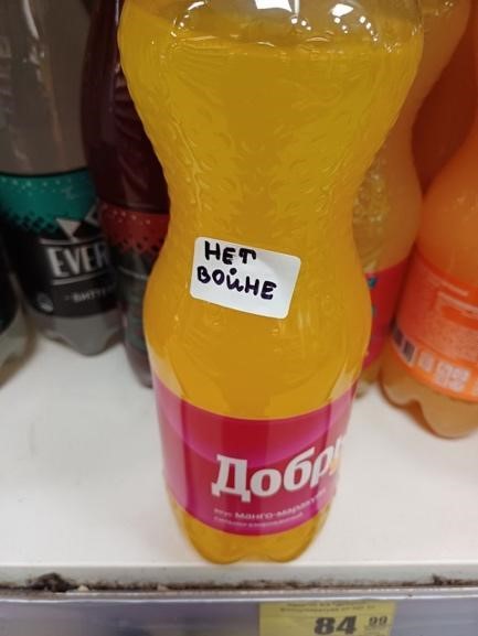 Diverse forme di protesta: sticker contro la guerra, scritte su banconote, su lucchetti: “Pace”, “No alla guerra”, “Combatti!”, “Apri gli occhi”, “Pace al mondo”, “Il prezzo della guerra è la morte!”, “Morte al regime!”.