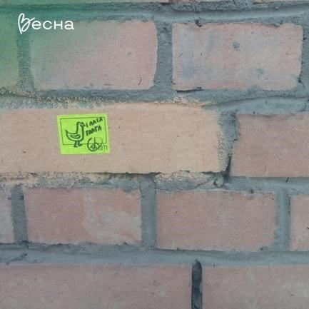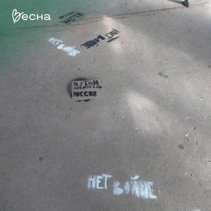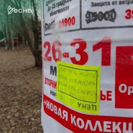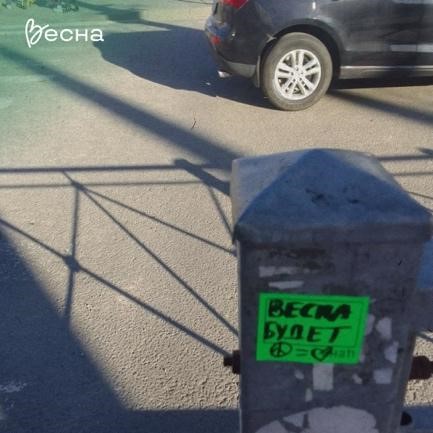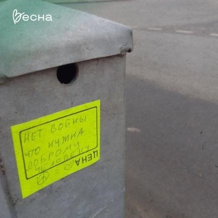 Sticker con cuoricini e simboli della pace a San Pietroburgo: “No alla guerra”; “La pace è amore. L’amore è vita. La guerra è morte. No alla guerra”; “Non c’è guerra di cui una brava persona abbia bisogno”; “L’Aia, l’Aia” (in russo, la trascrizione del nome della città sede della Corte Penale internazionale, coincide con l’onomatopea del verso dell’oca); “Libertà ai prigionieri politici”; “Verrà la primavera”; “Vota contro il male” (”Zlo”, male, è scritto con la lettera latina Z, simbolo della propaganda ufficiale in favore della guerra); “Non sei solo”.