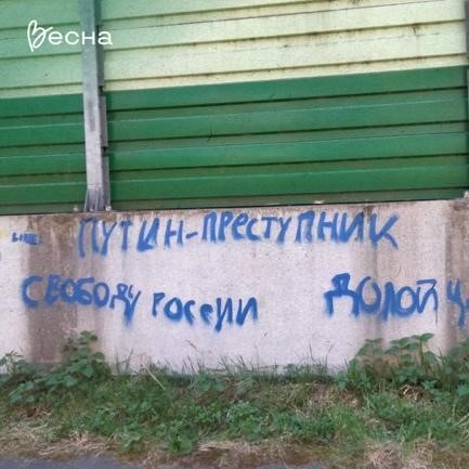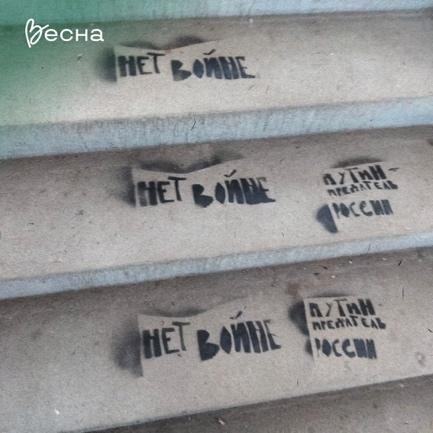 Graffiti sui muri e sull’asfalto: “No alla guerra”, “Putin è un traditore”, “Putin è un criminale”, “Libertà alla Russia”.