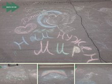 Disegni lasciati da alcuni bambini in via Tipanova: “Abbiamo bisogno della pace!”, “Bambini felici”. “Pace al mondo”, “Noi siamo per la pace!”