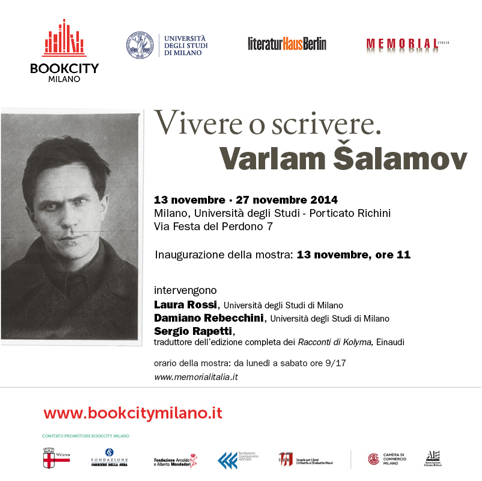 La mostra «Vivere o scrivere. Varlam Šalamov» è dedicata alla figura di uno dei massimi scrittori russi del Novecento, Varlam Šalamov, i cui testi hanno svolto un ruolo fondamentale nel far conoscere al pubblico la realtà dell’inferno concentrazionario sovietico. Dopo la morte di Stalin, nel 1953, Šalamov si dedica per vent’anni alla stesura dei Racconti di Kolyma, la sua opera più celebre, summa delle esperienze dello scrittore all’interno dei campi. Al pari di Aleksandr Solženicyn, ha descritto l’orrore del sistema staliniano, fornendo al lettore un’alta testimonianza sul percorso spirituale dell’uomo russo nella storia contemporanea.