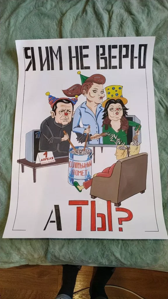 Viktorija Kočkasova, abitante a Voronež, è stata fermata per una caricatura dei propagandisti russi. L’attivista aveva esposto in Piazza dei Soviet un cartello raffigurante Vladimir Solov’ev, Margarita Simon’jan e Ol’ga Skabeeva.