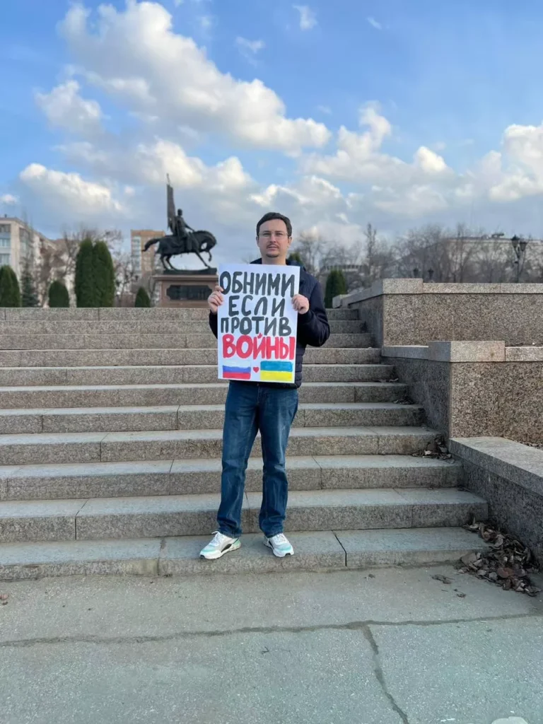 Il 27 marzo Oleg Šutkov, che teneva un picchetto con il cartello: “Abbracciami se sei contro la guerra”, è stato fermato sul lungomare della città di Samara.