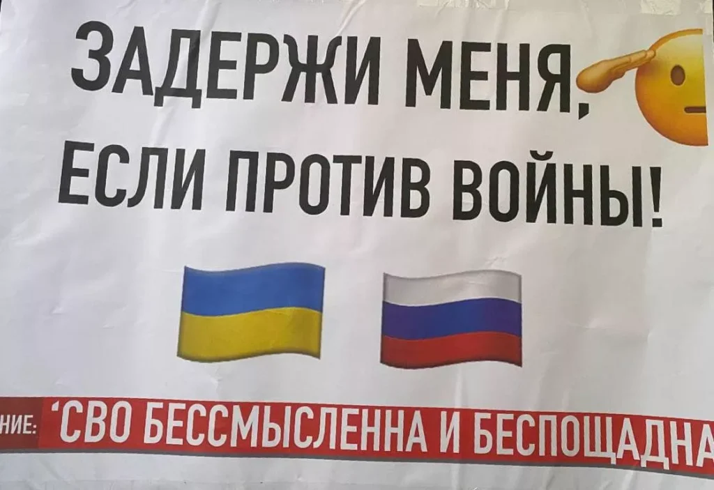 Il 4 aprile a Mosca all’Ochotnyj Rjad hanno fermato Vladimir Emarkov perché mostrava un cartello con la scritta “No alla guerra”.
