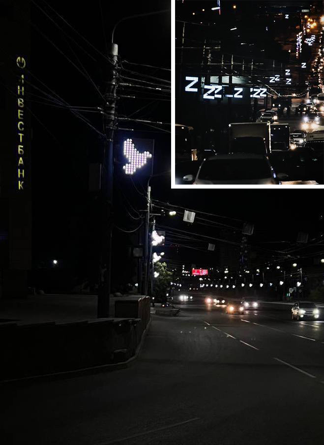 Sugli schermi di una via di Čeljabinsk al posto del simbolo “Z” è apparsa una colomba disegnata con i pixel.