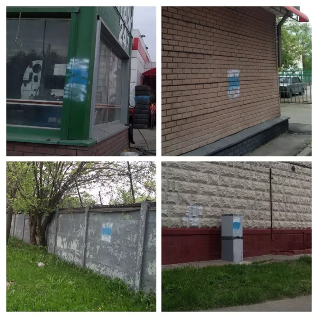 A Mosca e nella vicina Podol’sk sono sempre di più i graffiti con le bandiere bianche, blu e bianche contro la guerra.