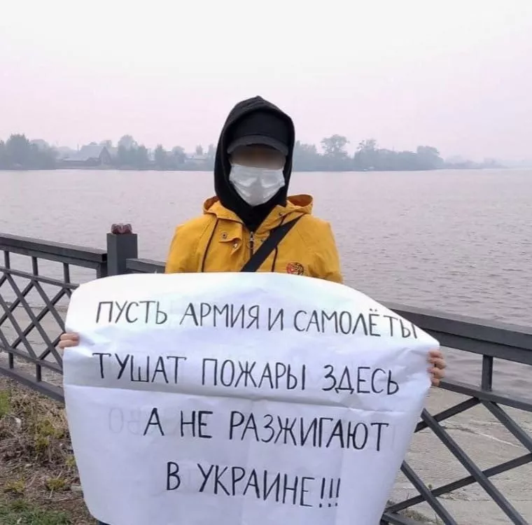 Nella regione di Sverdlovsk una ragazza ha manifestato con un cartello che diceva: “L’esercito e gli aerei vengano a spegnere gli incendi qui, invece di accenderli in Ucraina”.