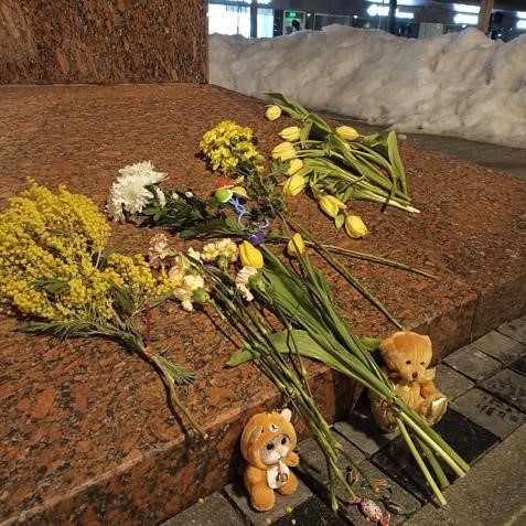 A Mosca ai piedi del monumento a Lesja Ukraïnka sono stati deposti fiori e giocattoli in memoria delle vittime del bombardamento di Odessa nella notte del 2 marzo, quando l’attacco di un drone su un condominio ha causato la morte di dodici persone, fra cui due bambini.