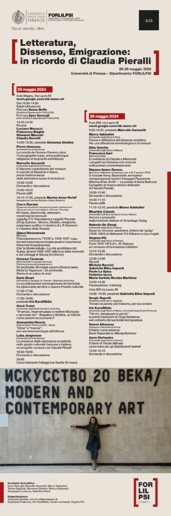 Il convegno è dedicato al ricordo di Claudia Pieralli, professoressa associata presso l’Università degli Studi di Firenze e socia di Memorial Italia, prematuramente scomparsa il 7 ottobre del 2023.