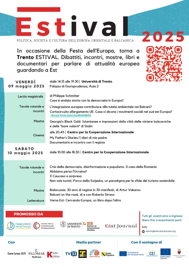 ESTIVAL è un’iniziativa promossa da Osservatorio Balcani Caucaso Transeuropa / Centro per la Cooperazione Internazionale, la Scuola di Studi Internazionali dell’Università di Trento e East Journal, nata per consolidare il dialogo tra realtà culturali italiane attive nell’analisi dell’Europa centrale, orientale e balcanica.