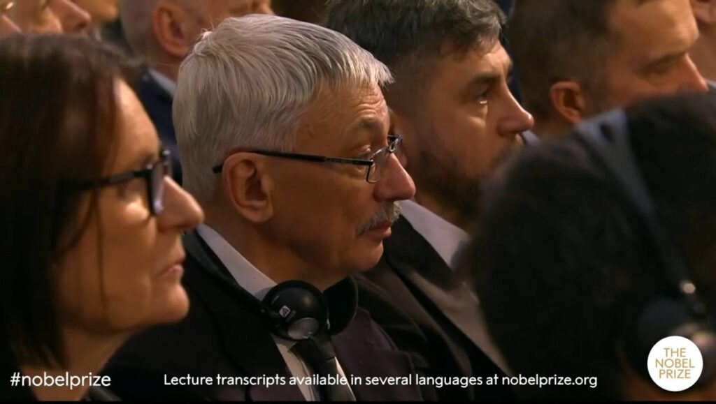 Le foto sono state scattate nel 2022 durante la cerimonia di consegna del Premio Nobel per la Pace a Memorial, ritirato da Jan Račinskij. Tra il pubblico anche Oleg Orlov e Irina Ščerbakova. Tutti e tre sono stati dichiarati agenti stranieri.