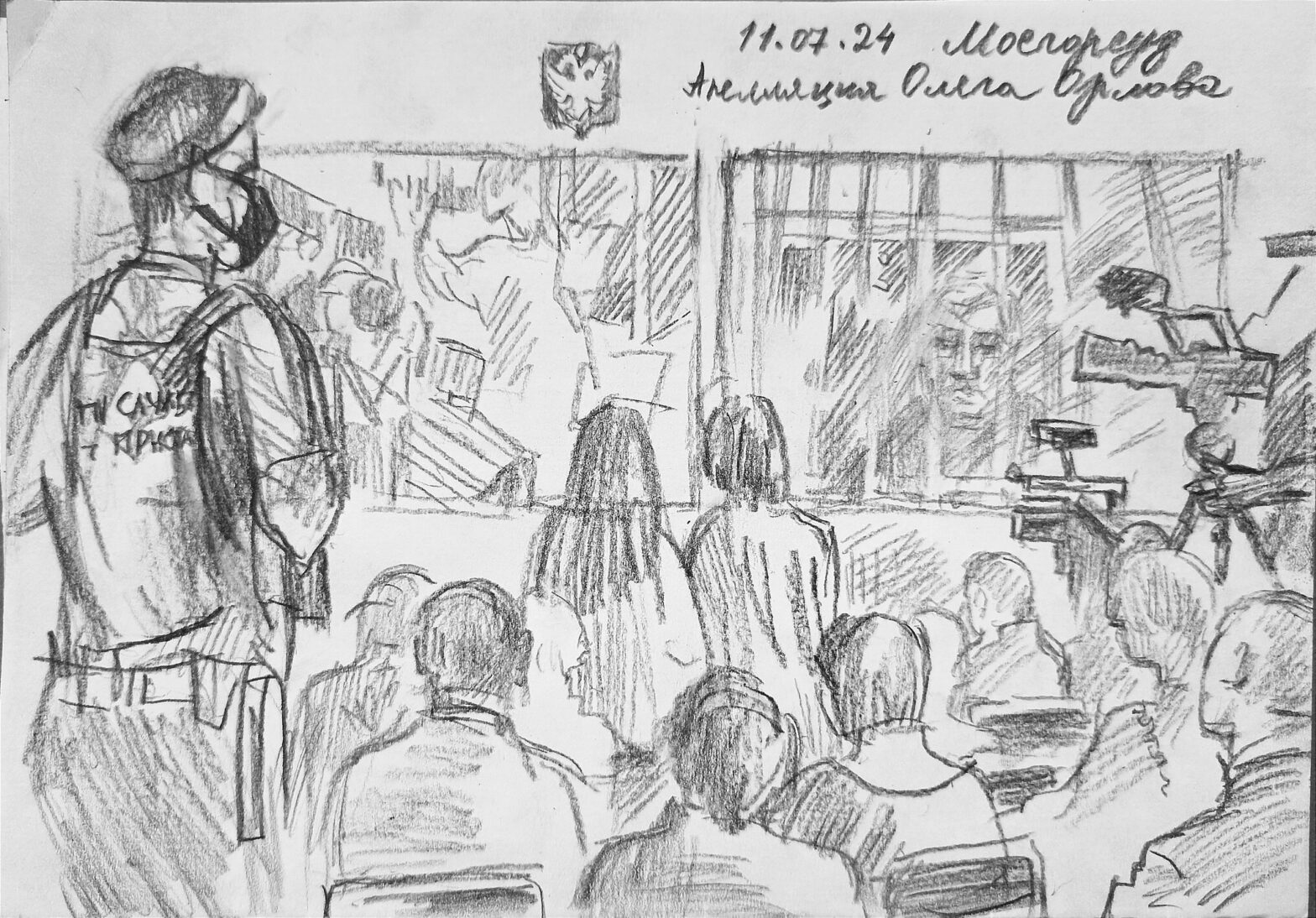 21 giugno 2024 Il 7 giugno 2024 si è tenuta a Mosca presso il tribunale Mosgorsud l’udienza di appello per il processo contro Oleg Orlov che è stata tuttavia rinviata all’11 luglio. Più di un anno fa Orlov, tra i fondatori di Memorial e copresidente del Centro per la difesa dei diritti umani Memorial, è stato accusato di “vilipendio reiterato dell’esercito” per avere condannato apertamente la guerra criminale che la Federazione Russa ha avviato contro l’Ucraina. Il processo contro Oleg Orlov riflette lo stato attuale del sistema giudiziario della Federazione Russa. Perizie inattendibili, testimonianze di “veterani russi” che si ritengono offesi, brillanti interventi degli avvocati e dello stesso Orlov, due condanne, due processi di appello, Guerre stellari e Kafka. È possibile ripercorrere le tappe dei due processi in russo, sul sito del Centro per i diritti umani Memorial: La cronaca del processo contro Oleg Orlov. Qui offriamo un sintetico resoconto in italiano dell’udienza. Illustrazione: Inga Christič. Immagini: Sota Vision. 7 giugno 2024. Udienza di appello. Mosgorsud, Tribunale municipale di Mosca. Oleg Petrovič Orlov, attivista per i diritti umani, premio Nobel per la pace come membro di Memorial, in collegamento video dal carcere SIZO-2 di Syzran’, regione di Samara. Keterina Tertuchina, avvocata. A. S. Surikov, pubblico ministero. Marija Aleksadrovna Larkina, giudice. → La giudice Larkina non accoglie la richiesta presentata da Orlov di considerare illegittimo il trasferimento presso il carcere SIZO-2 di Syzran’ e di concedergli del tempo per consultare i materiali del processo. → La giudice Larkina solleva la questione del rinvio dell’udienza: non c’è stato tempo per notificare a tutte le parti l’integrazione del ricorso presentata dagli avvocati. → L’avvocata Tertuchina richiede di rinviare l’udienza, riportare Oleg Orlov a Mosca, mettergli a disposizione i materiali del processo e il tempo necessario per preparare il ricorso insieme alla sua difesa. Non ci sono motivazioni oggettive per trattenere Oleg Orlov a Syzran’. Gli incontri con l’avvocato sono molto difficili. Già il 5 aprile la difesa e Orlov avevano riferito di non avere avuto il tempo di consultare tutti i materiali e di prepararsi per l’appello. Il trasferimento di Orlov in un’altra regione viola la presunzione di innocenza e il principio di parità delle parti. Inoltre l’imputato non può partecipare a pieno titolo all’udienza tramite collegamento video: è difficile per lui seguire ciò che accade e non può interagire con l’avvocato. L’avvocata Tertuchina ha anche sottolineato che a Orlov non è stata consegnata l’integrazione del ricorso, da lei presentata il 31 maggio. Lei stessa non è stata adeguatamente informata della data dell’udienza. → Il pubblico ministero Surikov ha accettato il rinvio dell’udienza. → Il giudice ha rinviato l’udienza all’11 luglio 2024 e ha affermato che la questione del trasferimento non è di competenza della corte d’appello. Secondo Larkina, la difesa non è privata della possibilità di incontrare Orlov lì dove si trova. Orlov sarà quindi presente in collegamento video anche nel corso della prossima udienza. Citazioni “Orlov e sua moglie sono due pensionati. Adesso, oltre ai servizi dell’avvocato, dovrebbero anche pagare i viaggi da Mosca a Syzran’ ogni volta che un avvocato fa visita a Orlov. Prima del trasferimento Orlov incontrava la sua avvocata ogni settimana. Adesso è impossibile. Orlov non ha mai ricevuto tutta insieme la documentazione del processo. Ha visto per la prima volta l’ottavo fascicolo solo il 5 aprile e non ha avuto il tempo di consultarlo. Il pubblico ministero partecipa sempre in tribunale di persona. Non deve percorrere lunghe distanze e affrontare spostamenti estenuanti che durano giorni. Non è in alcun modo limitato nel lavoro con i materiali del processo.”